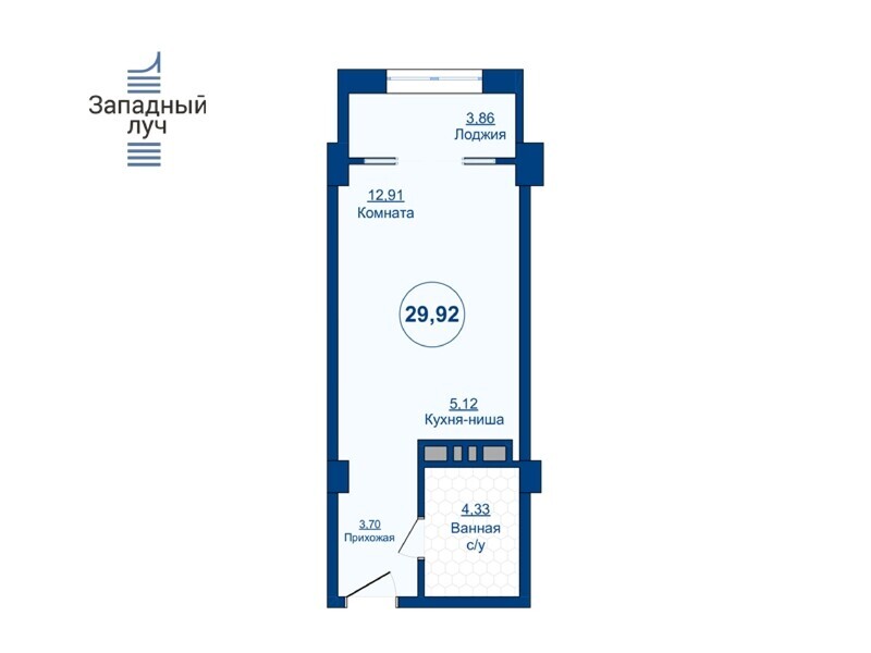 1-комнатная квартира, 29.92м2, 12 этаж