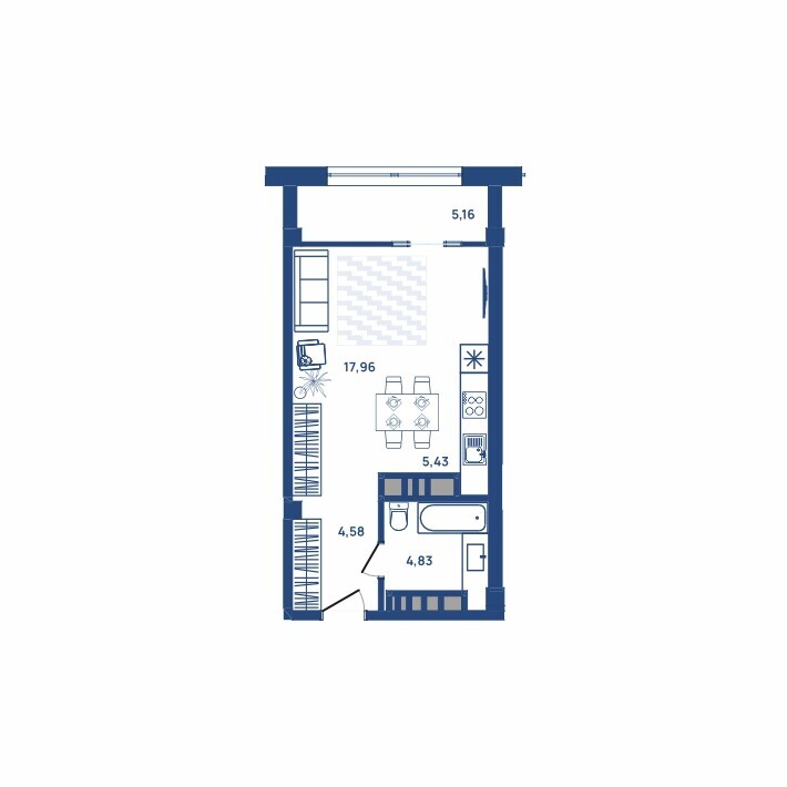1-комнатная квартира, 31.9м2, 4 этаж